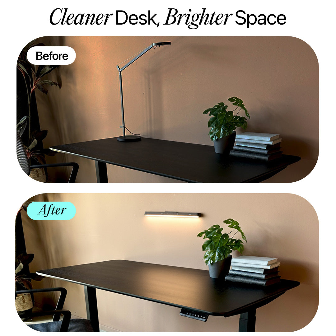 135° of adjustability means Aura works anywhere. Eliminate workspace shadows, prevent screen glare, illuminate deep shelves or tight corners. Point light exactly where you need it. Precision positioning is what makes wireless lighting actually functional.