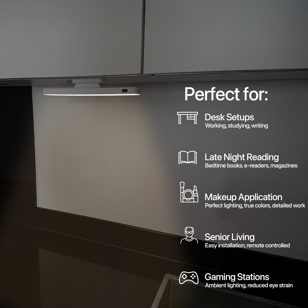 We reimagined lighting installation by eliminating wires, tools, and headaches. Peel, position the magnetic mount, snap Aura on. Done. Perfect lighting in under a minute—no electrician or YouTube tutorials required.